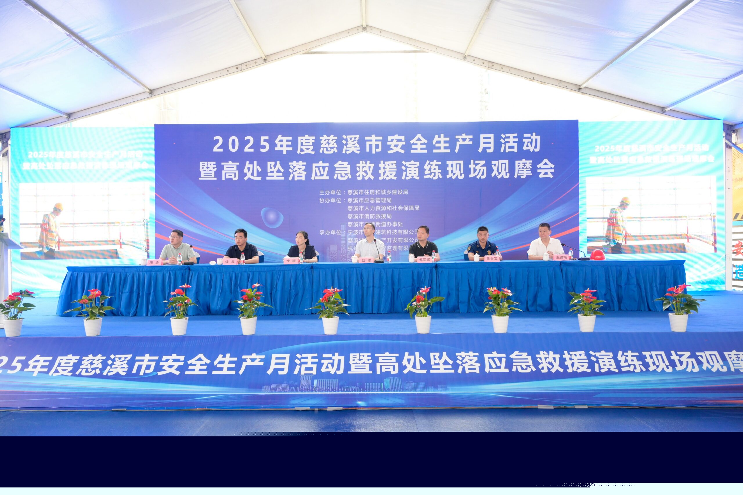 ? ? ? 為深入貫徹習(xí)近平總書記關(guān)于安全生產(chǎn)的重要論述,全面落實(shí)建筑領(lǐng)域安全管理要求,6月11日,2025年度慈溪市安全生產(chǎn)月活動暨高處墜落應(yīng)急救援演練現(xiàn)場觀摩會,在我公司承建的新潮塘5#地塊項(xiàng)目現(xiàn)場隆重舉行。本次活動由慈溪市住房和城鄉(xiāng)建設(shè)局主辦,寧波市建木建筑科技有限公司承辦,吸引了市人社局、應(yīng)急管理局、消防救援大隊等多部門負(fù)責(zé)人及全市在建項(xiàng)目參建單位代表共計近500余人參與。