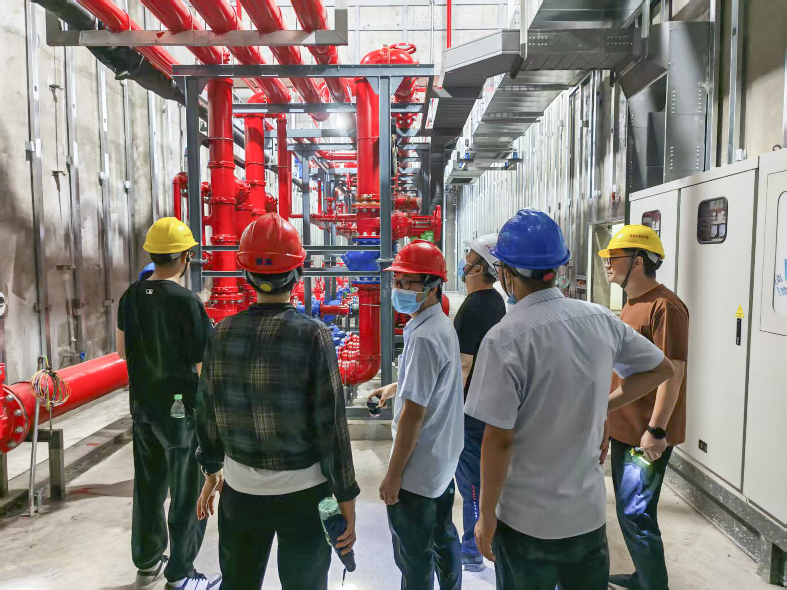 ? ? 聽(tīng)取完項(xiàng)目創(chuàng)優(yōu)匯報(bào)后,專家組一行首先到達(dá)3#屋面,對(duì)屋面的排版及支架給予高度評(píng)價(jià),對(duì)循環(huán)水泵組的預(yù)制作的模式表示了肯定。隨后專家組查看了3#樓一層工程技術(shù)中心,地下室、濕式報(bào)警閥間閥間、消防水泵房等重點(diǎn)機(jī)房并對(duì)走廊吊頂及實(shí)驗(yàn)室內(nèi)大面積明裝管線的細(xì)節(jié)處理給予指導(dǎo)性意見(jiàn)。