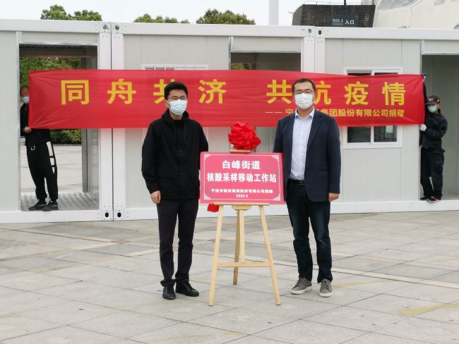 寧波建設(shè)集團(tuán)向白峰街道捐贈(zèng)8個(gè)核酸移動(dòng)采樣點(diǎn)板房